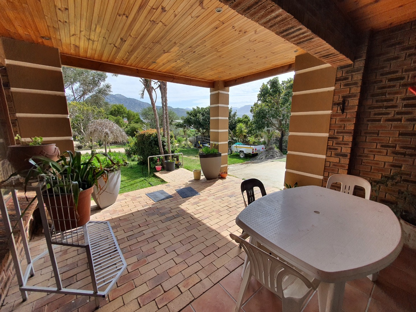 Lovely established garden with mature trees, and you enter your house through the enclosed veranda.